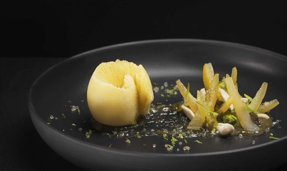 La veille, faites bouillir l’eau dans une casserole avec le glucose et le sucre. Versez le sirop sur le jus de kalamansi et ajoutez le zeste. Mixez à l’aide d’un blender plongeant. Laissez maturer 24 h.