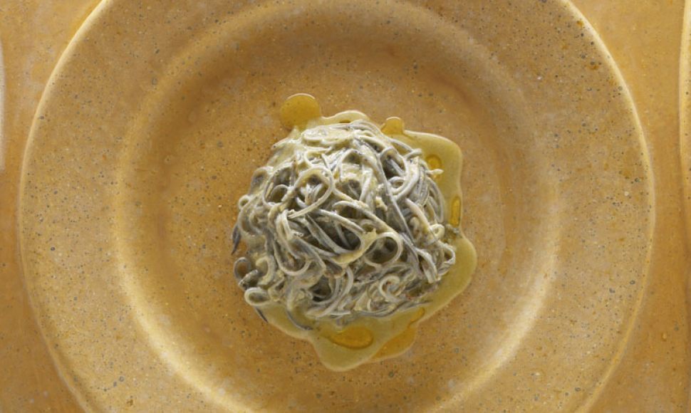 Autrefois, quand les civelles étaient pêchées à l’embouchure de l’Arno, on les nommait « cee », diminutif de « cieco » qui signifie aveugle en italien. Pise, au XIIe siècle était encore un république maritime prospère. Nous avons aimé cette façon simplissime de cuisiner ce fragile produit.