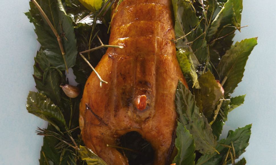 « Le fond de la cuisine majorquine est invariablement le cochon dans toutes les formes et sous tous les aspects. À Majorque, on fabrique, j’en suis sûre, plus de deux milles sortes de mets avec le porc » l’écrivait Georges Sand (Hiver à Majorque, 1841). Le « Cochinillo asado » est le plus simple d’entre eux, mariné dans du jus de citron avant d’être rôti. Nous avons préféré le farcir de cet agrume et ajouter des aromates.
