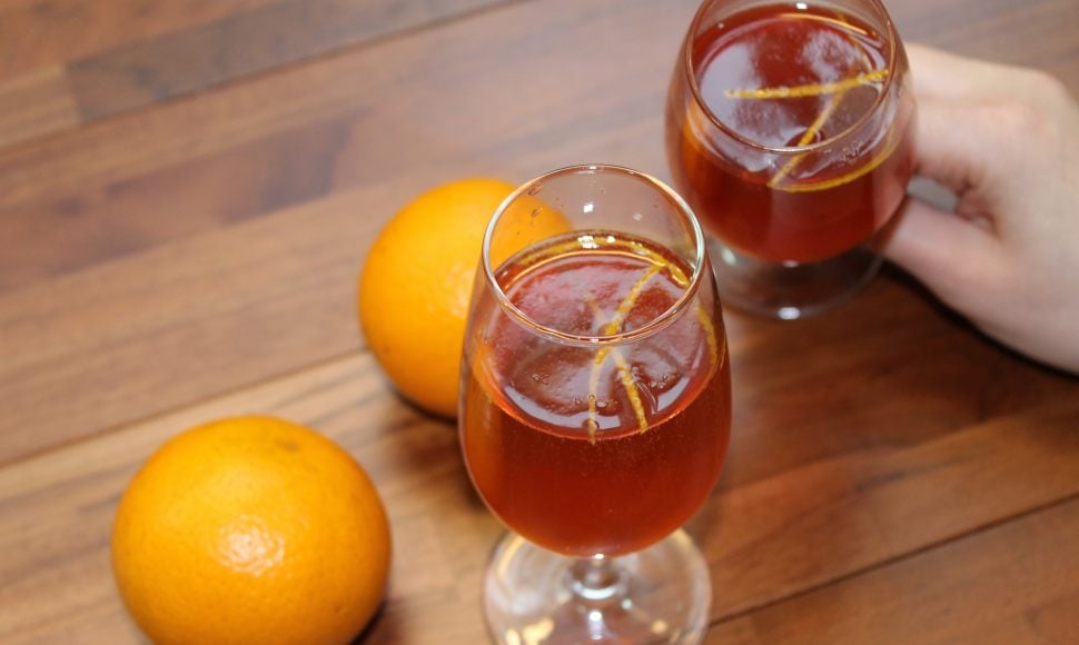 Imbiber les carrés de sucre brun d’Angostura bitter.