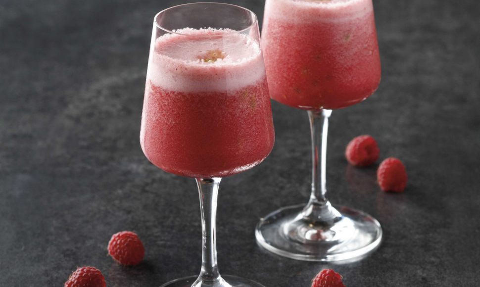 Mettez les glaçons dans le bol du blender et ajoutez le jus de litchis, les framboises, le jus d’ananas ainsi que la pulpe et le jus de fuit de la Passion. Mixez pendant 30 s à forte vitesse.