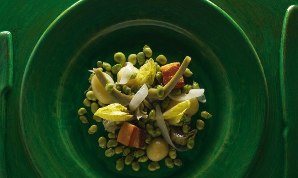 Dans le Basilicata, la Ciaudedda, parmentier aux fèves et aux artichauts est un plat rustique et très populaire qui constitue en soi un repas. Nous avons repris l’association intéressante de ces trois légumes mais en l’allégeant de trop d’oignons.
