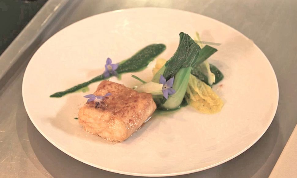 Cœur de cabillaud, paprika, légumes verts rafraîchis