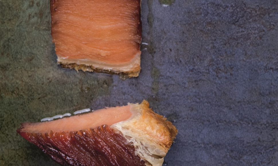 Réalisez un feuilletage à 6 tours. Abaissez de 2 mm d'épaisseur à l'aide d'un rouleau à pâtisserie, puis détaillez un rectangle de la taille de votre moule à cake.