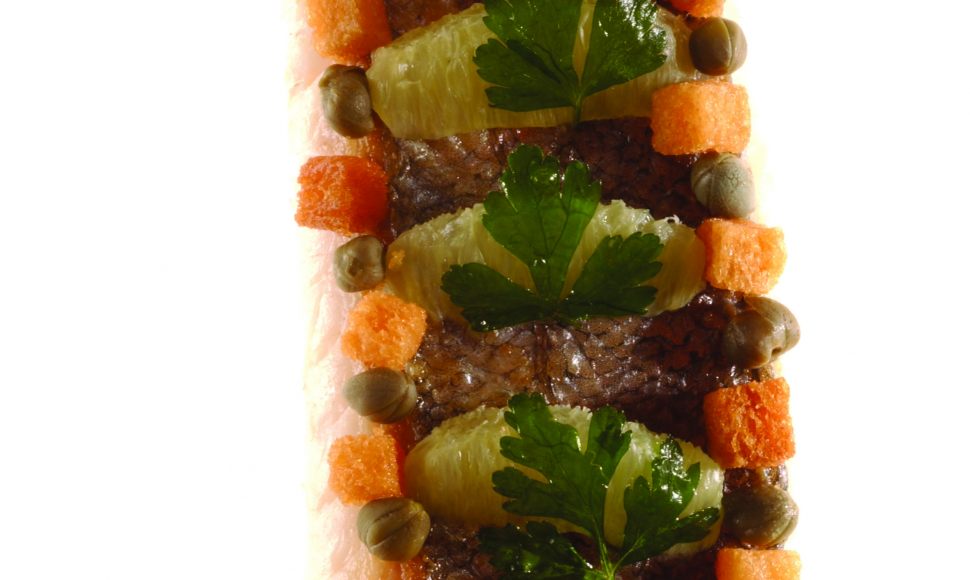 Tailler 4 filets réguliers de 220 g par personne dans le dos du poisson. Retirer délicatement la partie sanguinolente. Rincer les filets. Bien les éponger en les disposant entre deux feuilles de papier absorbant. Les saler, puis les fariner légèrement.