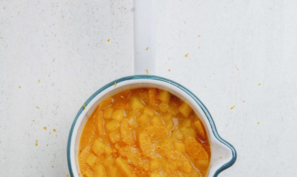 Une compote faite maison mandarine, mangue et miel qui plaira aux petits comme aux plus grands.