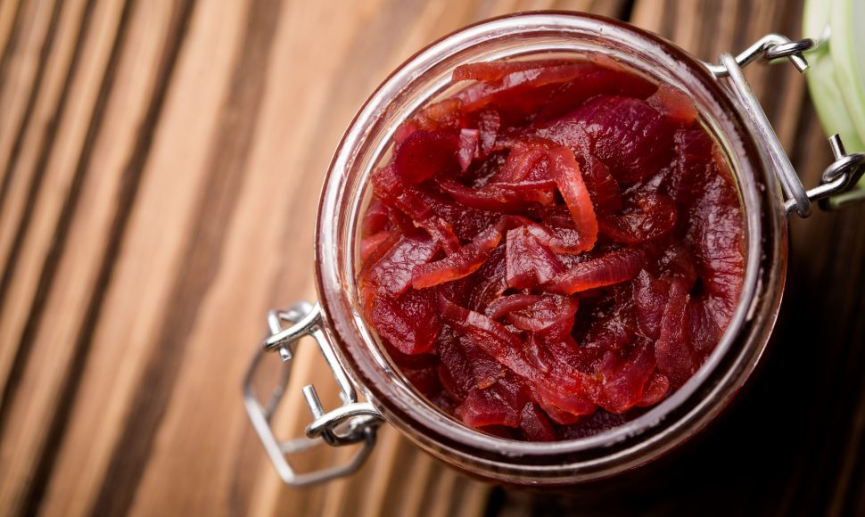 Pelez puis émincez finement les oignons. Faites fondre le beurre salé dans une poêle et ajoutez les oignons, la branche de thym, le sucre, un peu de sel et de poivre. Laissez compoter environ 30 min en remuant régulièrement jusqu’à ce que les oignons soient bien caramélisés.
