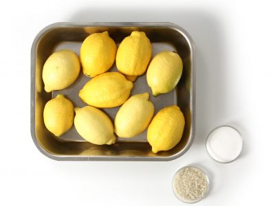 Laver tous les citrons. Couper un citron en deux. Réserver l'une des moitiés pour une autre utilisation.