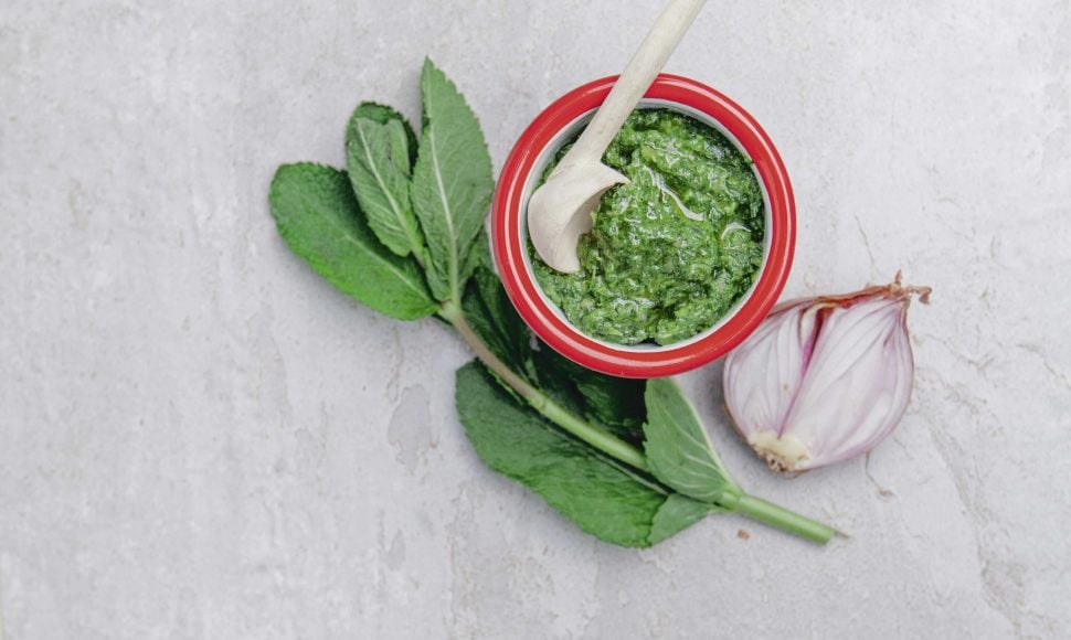 Un condiment frais à la menthe, tonifié par des saveurs iodées d'anchois et acidulées de citron.