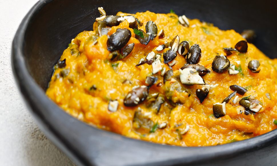 Cette recette est prévue pour réaliser 300 g de condiment pépins de courge. Légèrement sucrée grâce au potimarron, elle peut se déguster en entrée ou en apéritif sur des toasts de pain grillés.