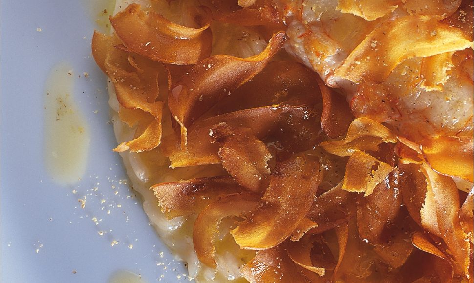 Copeaux de bonite séchée, un risotto aux gamberoni