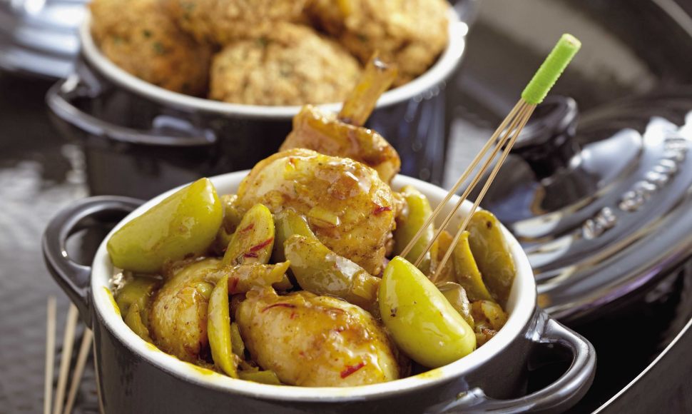 Pour un apéritif, remplissez des mini-cocottes avec les bouchées de coquelets, les falafels et accompagnez d'une sauce au houmous et de petites feuilles de salade croquantes.