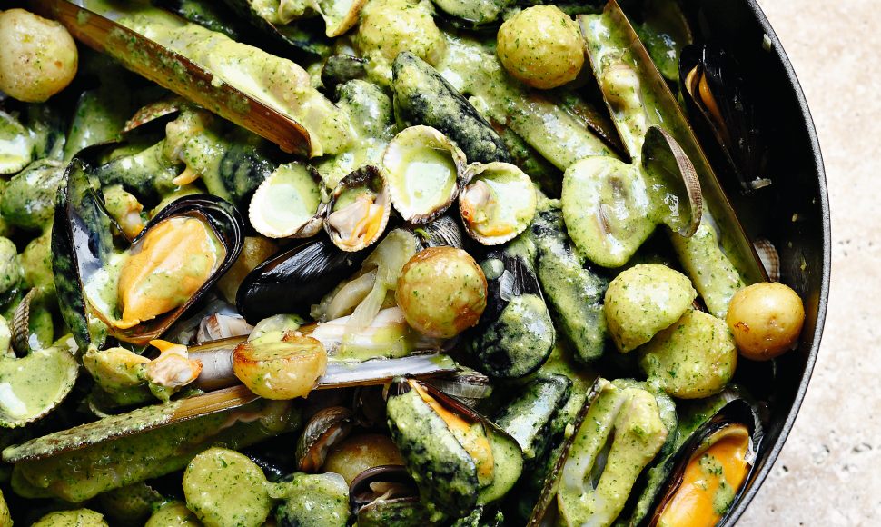 Une farandole de crustacés nagent dans une marinière savamment parfumée au fenouil et à l'échalote. Un plat estival gourmand agrémenté, en plus, de pommes de terre grenaille fondantes.