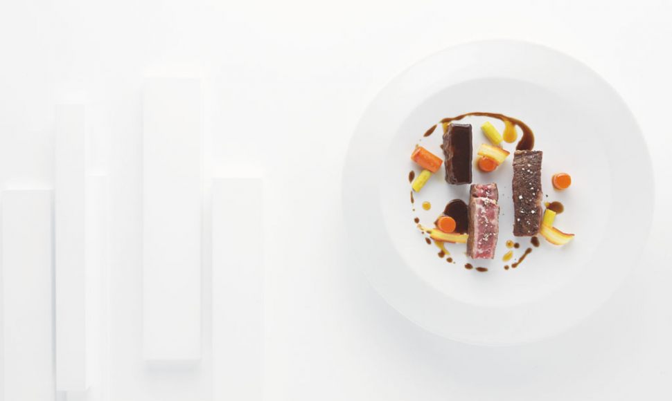 Côte de bœuf au sautoir, les travers fondants et leur jus, contraste de carottes