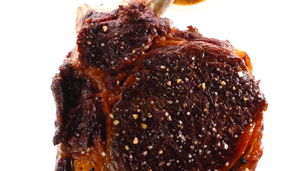 Côte de bœuf de chalosse sur la braise, condiment échalote moutarde de meaux à l’ancienne