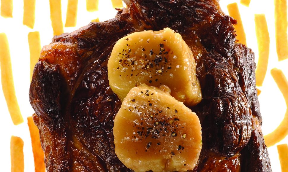 Parer et manchonner la côte sans trop la dégraisser. Couvrir le manchon avec de l’aluminium ménager. Marquer la côte de bœuf des deux côtés sur le gril modérément chaud : la laisser 2 minutes, la quadriller en lui donnant un quart de tour, puis la retourner et faire la même opération. Réaliser la cuisson désirée : bleue 3 minutes par face (58° à cœur), saignant 4 minutes par face (60° à cœur), à point 6 minutes par face (62° à cœur).