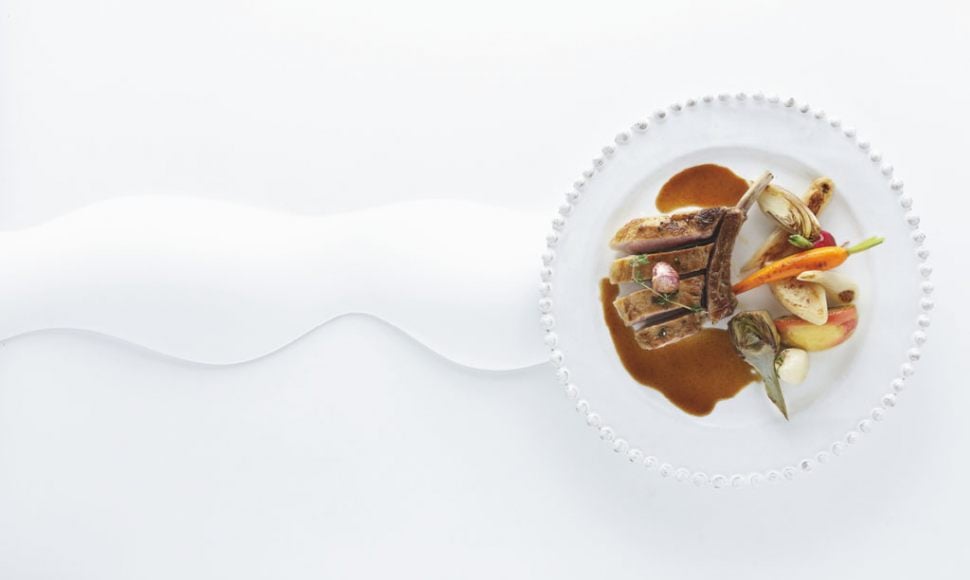 Détailler quatre côtes de 3 cm d’épaisseur dans le carré de porc.