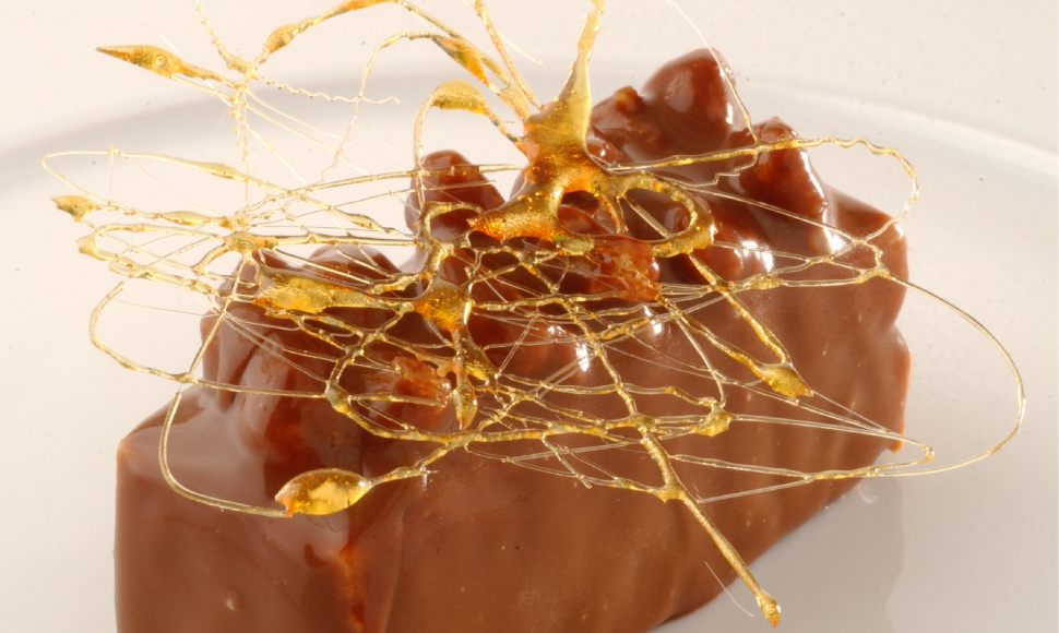 Porter à ébullition la crème fleurette avec le beurre et le glucose. Faire fondre le sucre à sec. Lorsque celui-ci devient caramel, y verser le mélange crème-beurre-glucose. Cuire le tout à 103 °C, puis retirer du feu. Ajouter alors la couverture lait concassée et les feuilles de gélatine égouttées. Bien mélanger et réserver au frais.