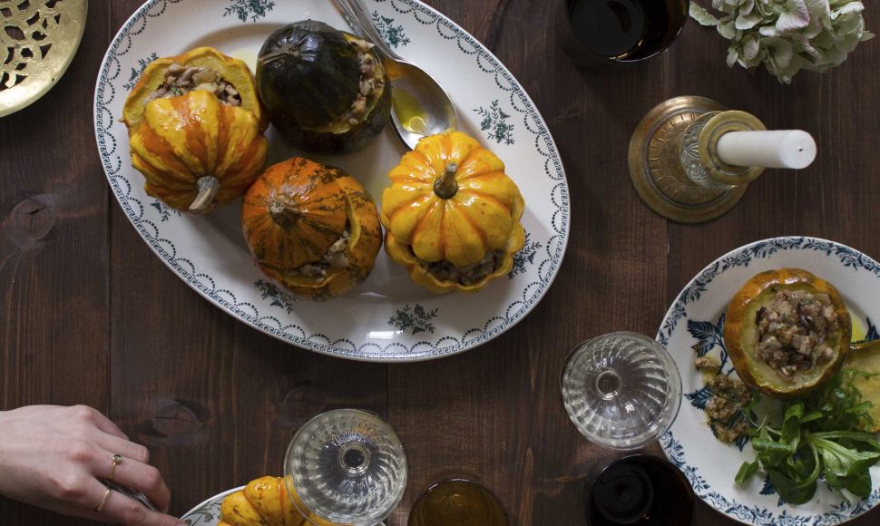 Des courges douces et onctueuses, farcies aux cèpes, artichauts, marrons et herbes aromatiques pour une explosion de saveurs végétales.