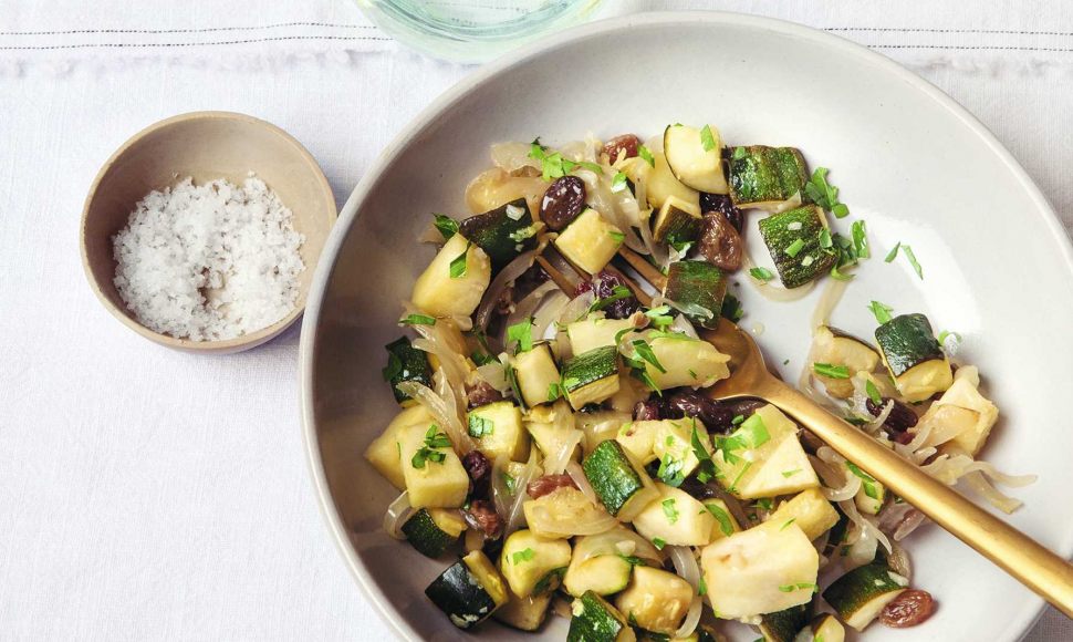 Un plat sucré-salé à base de courgettes, pommes, raisins avec du citron et du gingembre.