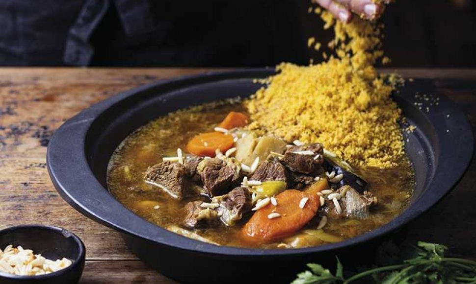 La recette traditionnelle du couscous avec de la semoule de polenta, un plat délicieusement parfumé grâce à son bouillon de légumes et une garniture aromatique d'exception !
