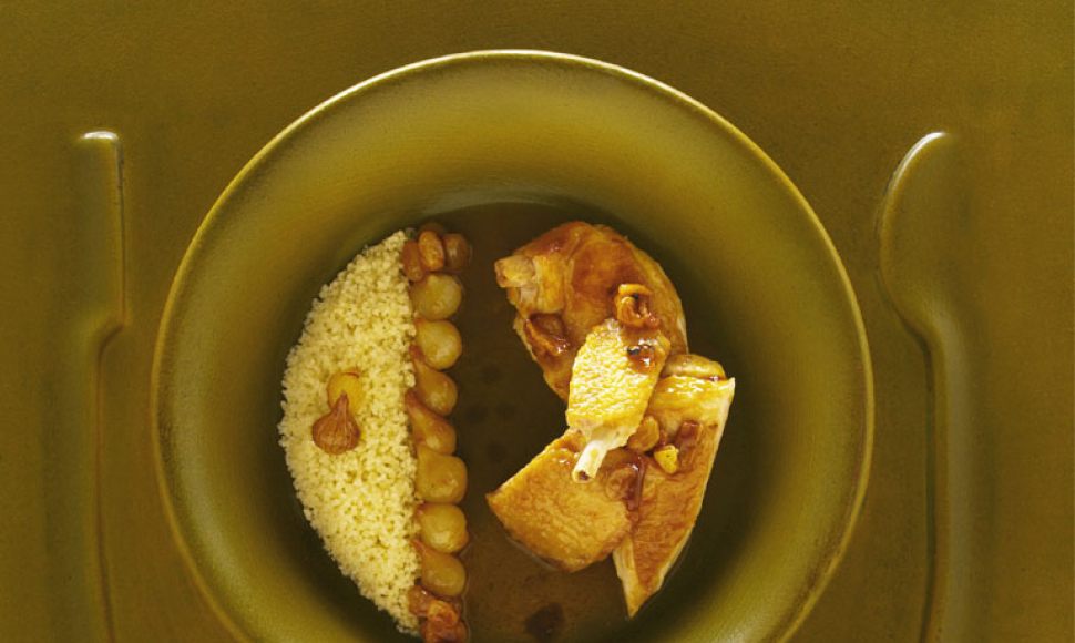 Couscous de poulet aux raisins secs et oignons caramélisés