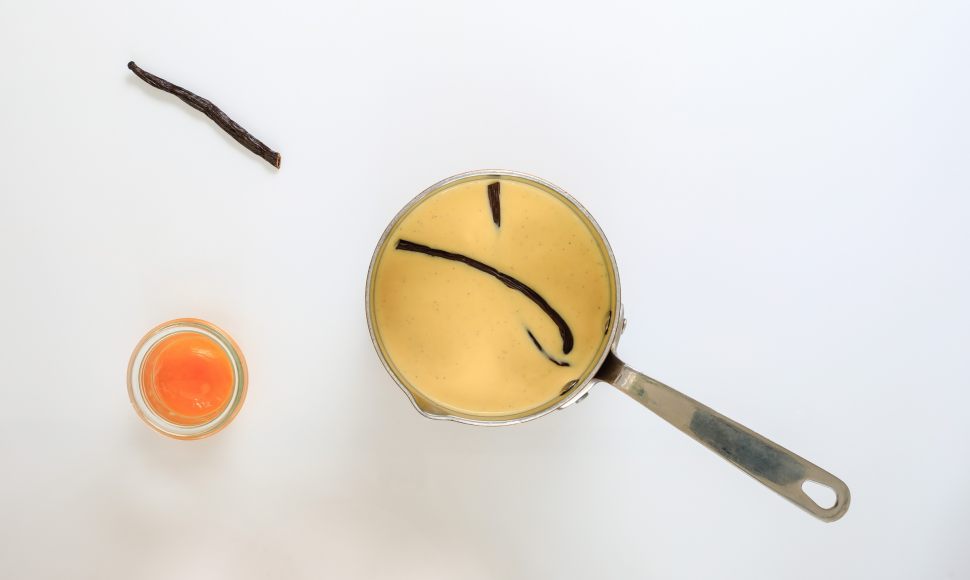 Le chef David Rathgeber utilise notamment cette crème anglaise pour la préparation de son riz au lait à l'impératrice. La crème anglaise est souvent la bienvenue pour accompagner un gâteau au chocolat ou bien dans la recettes des oeufs à la neige.