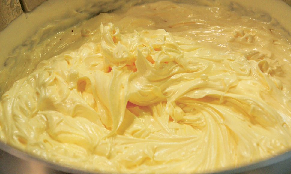 Le beurre pommade est primordial pour que la crème au beurre reste souple. Si votre beurre n’est pas assez mou, passez-le quelques secondes au micro-ondes. Si vous n’avez pas de thermomètre, vérifiez la cuisson du sucre en passant une cuillère sous l’eau froide et en la trempant très rapidement dans le sucre ; repassez-la immédiatement sous l’eau froide. Vous devez pouvoir former une petite boule de sucre entre vos doigts : c’est le « petit boulé ».