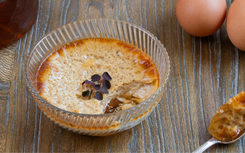 La crème aux œufs, un dessert simple et régressif qui fait l'unanimité : la cheffe Chloé Charles partage ses tours de main pour une crème qui se tient à la perfection. Elle la parfume subtilement avec du thé noir, pour y apporter encore plus de saveurs.