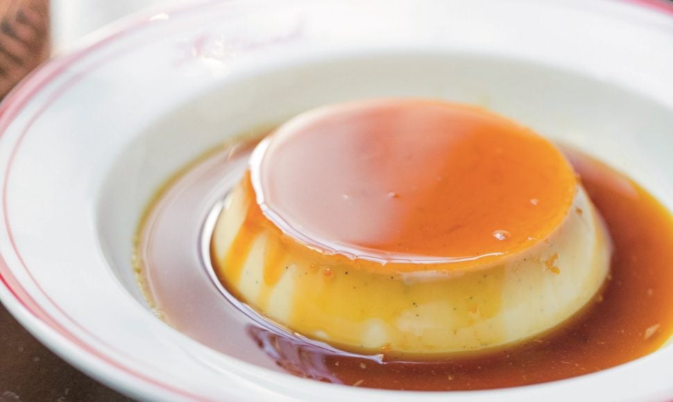 Fendez la gousse de vanille, grattez l’intérieur, puis mélangez-la ainsi que les graines au lait. Mettez celui-ci à bouillir. En attendant, mélangez les œufs et le sucre dans un saladier jusqu’à ce que le mélange blanchisse. Une fois le lait bouillant, délayez l’appareil en fouettant, puis passez-le dans un chinois étamine. Versez la crème obtenue dans les moules caramélisés. Préchauffez le four à 180 °C (th. 6). Placez les moules au bain-marie dans un plat à four rempli d’eau. Enfournez à mi-hauteur et laissez cuire pendant 45 min.