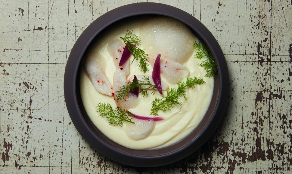 Crème de céleri-rave et fenouil, émulsion de coquillages