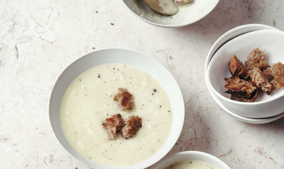 Une soupe à l'oignon à la fécule de maïs et jaune d’œufs à déguster avec du pain complet.
