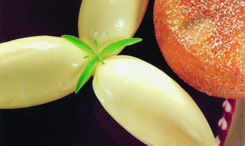 Crème glacée au yaourt, coulis de mûres, pain de gênes
