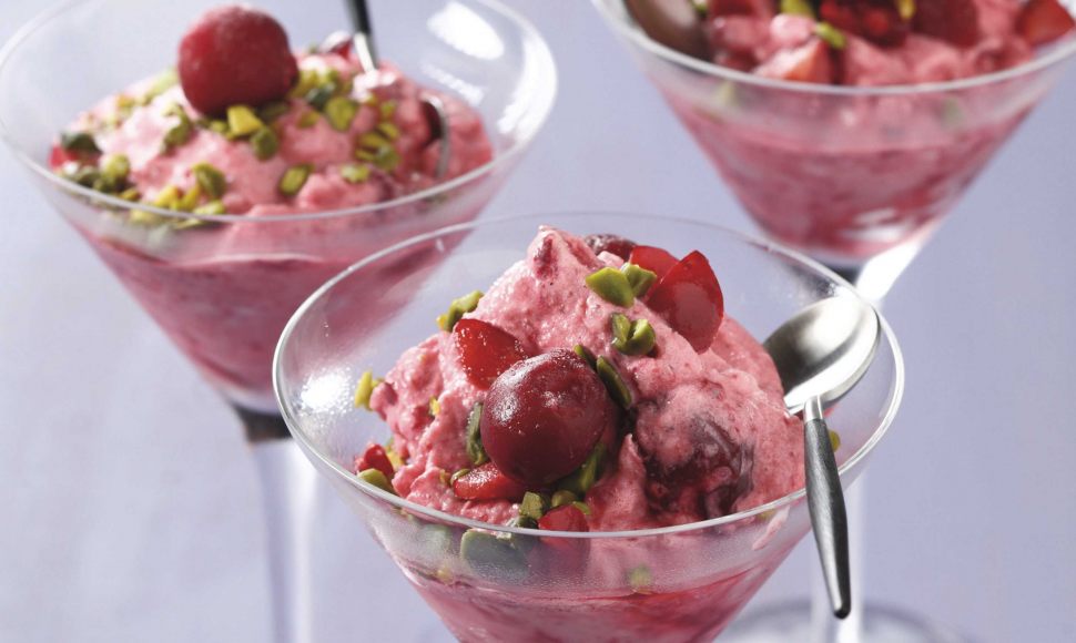 Mettez les cerises congelées dans le bol du blender, puis ajoutez la crème fraîche et le sucre glace. Actionnez le blender à petite vitesse d’abord, puis augmentez la vitesse. Arrêtez le blender de temps en temps pour rabattre le mélange à l’aide d’une spatule. Mixez pendant 1 min à vitesse maximale jusqu’à l’obtention d’un mélange lisse.