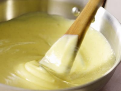 Verser le lait dans une casserole. Le chauffer avec la gousse de vanille fendue et grattée. Mélanger. Blanchir les jaunes avec le sucre. Ajouter la poudre à crème ou la farine. Mélanger. Verser le lait chaud au fur et à mesure dans les jaunes blanchis, bien mélanger. Reverser dans la casserole de lait. Cuire sans cesser de remuer pendant 3 minutes. Retirer la gousse de vanille la déposer dans une plaque. Débarrasser la crème dans le bol du batteur. Y fixer le fouet. Refroidir ainsi la crème à petite vitesse en incorporant le beurre en morceaux. Quand la crème est froide, la débarrasser, la filmer et la réserver au frais.