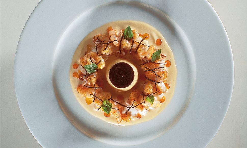 Crevettes bouquets de bretagne décortiquées puis refroidies, nage truffée