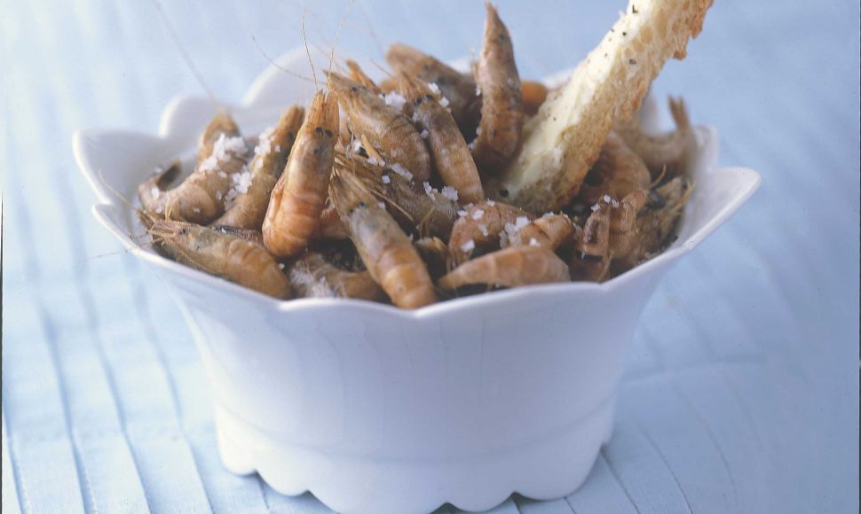 Les crevettes se mangent entières, non décortiquées, accompagnées de pain et de beurre.