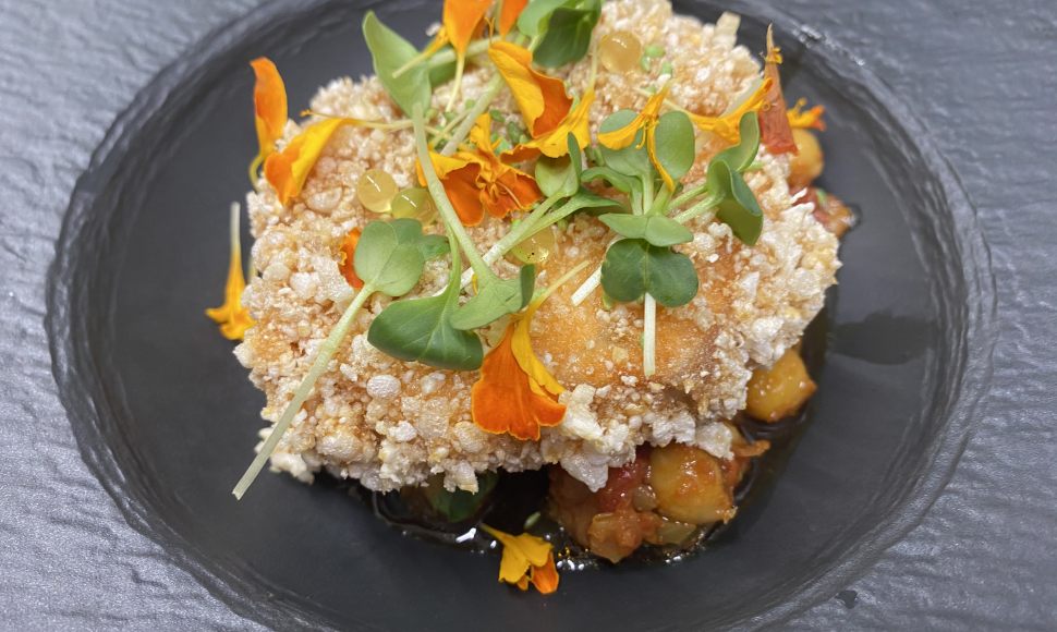 Casser l’œuf dans un ramequin, ajouter un peu de faire dans un autre et préparer la chapelure. Passer le saumon dans la farine puis l’œuf et ensuite la chapelure, pour le paner.