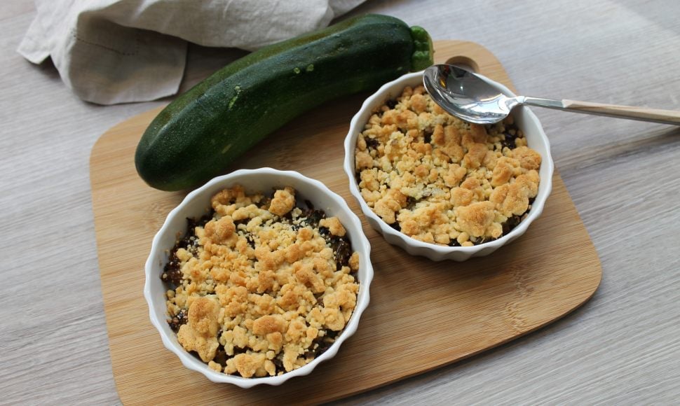 Qui a dit que le crumble était uniquement un dessert ? Dans cette version salée, des cubes de courgette, d'aubergine et de poivron se retrouvent compotés et recouverts d'une belle croûte dorée au parmesan. Avec cette recette, découvrez un plat haut en couleurs et en saveurs, qui sent bon la Méditerranée.