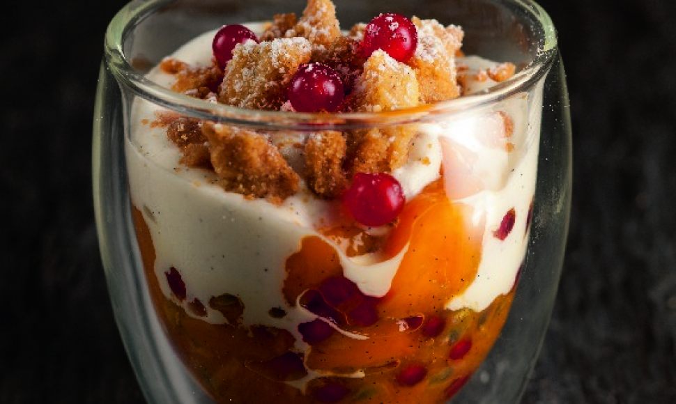 D’origine anglo-saxonne, le crumble, sucré ou salé, se décline à l’infini. Laissez-vous séduire par la version passion-mangue de l'École de Cuisine Alain Ducasse et offrez à vos papilles une explosion de saveurs exotiques. Préparez la pâte à crumble, une poêlée de mangue agrémentée d’un caramel, de groseilles et de fruit de la passion puis une délicieuse crème à la vanille. Déposez le mélange de fruits dans des verrines, une portion de crème vanillée et le biscuit. Vous n’avez plus qu’à déguster ce dessert estival.