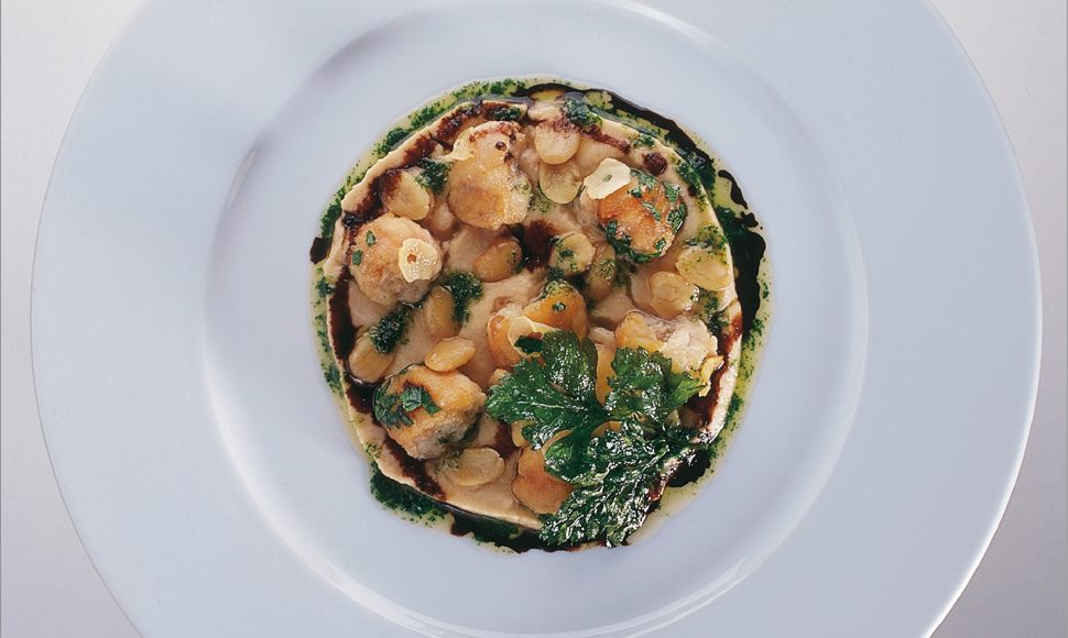 Cuisses de grenouille dorées, purée de haricots cocos parfumée de romarin et d’ail