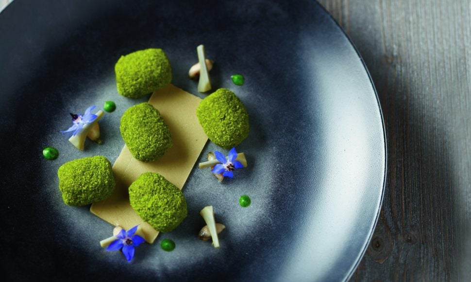 Cuisses de grenouilles en habit vert, ail doux et artichaut rôtis