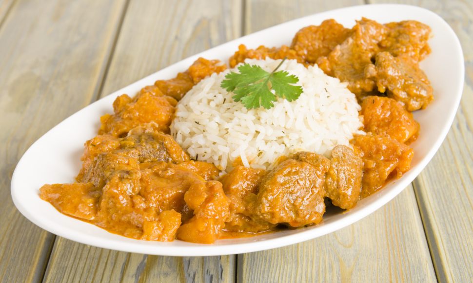 Lorsqu’ils sont dorés, ajouter l’agneau et la marinade. Laisser mijoter 30 minutes à feu doux. Servir avec du riz basmati.
