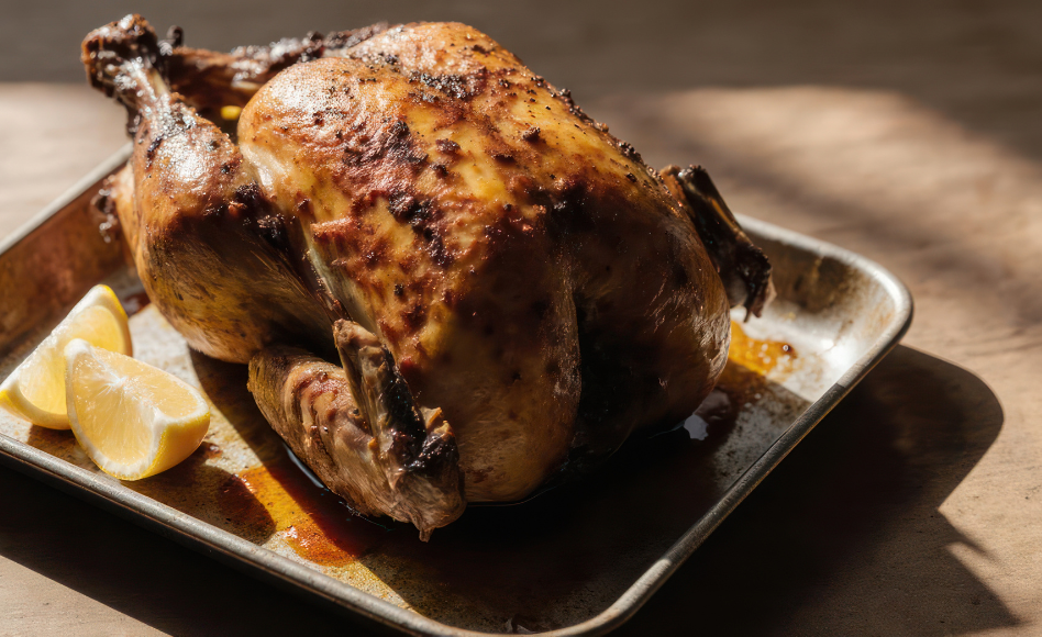 Bien remettre la peau en place afin de fermer l’orifice du cou. Flamber la dinde sur toute sa surface mais en maintenant la flamme suffisamment loin pour ne pas brûler la chair. Avec du papier absorbant, frotter la dinde afin d’éliminer les résidus du flambage. Déposer la dinde dans une plaque et la réserver au réfrigérateur.