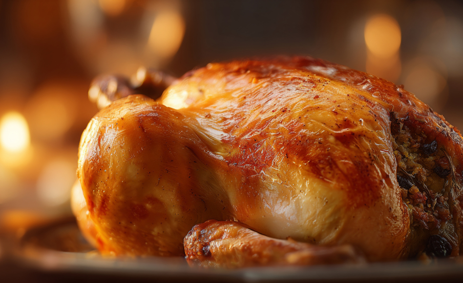 Disposer la dinde dans un plat allant au four et l’enfourner pendant 3h en l’arrosant de son jus de cuisson pendant toute cette durée et en la retournant à mi-cuisson.