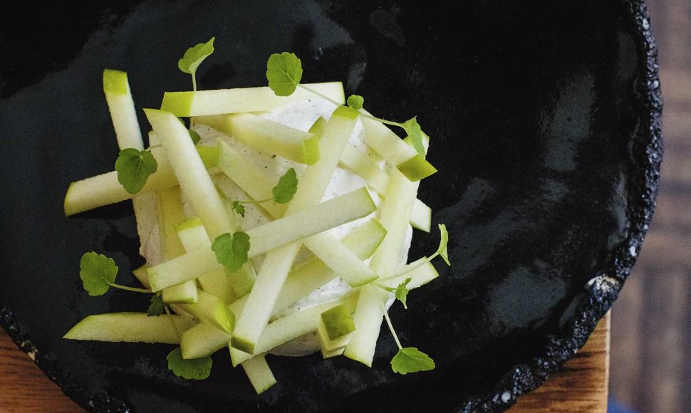 Une tatin accompagné d'un sablé sarrasin torréfié pour le côté rustique et un crémeux à la pomme verte pour sa rondeur acidulée. Un dessert savoureux qui épatera vos convives !