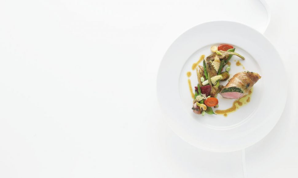 Dos d’agneau de la race des Préalpes du Sud « pasqualina », jeunes légumes gratinés