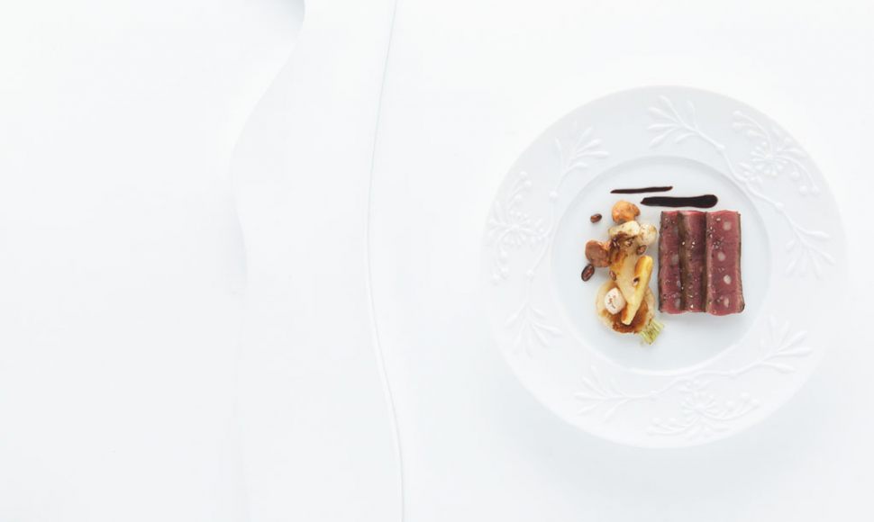 Dos de chevreuil piqué de lard rôti en cocotte, fruits et légumes d’automne