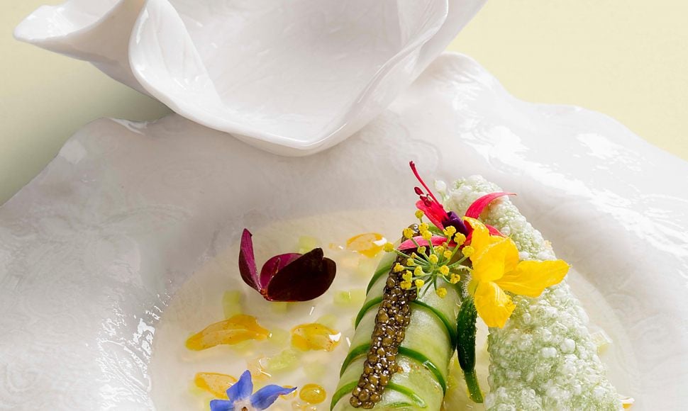 Frais et gorgé d'eau, le concombre est le légume qui fait le bonheur des gourmets désireux de manger équilibré. Il est ici sublimé par le chef Sylvestre Wahid grâce, notamment, au caviar osciètre.