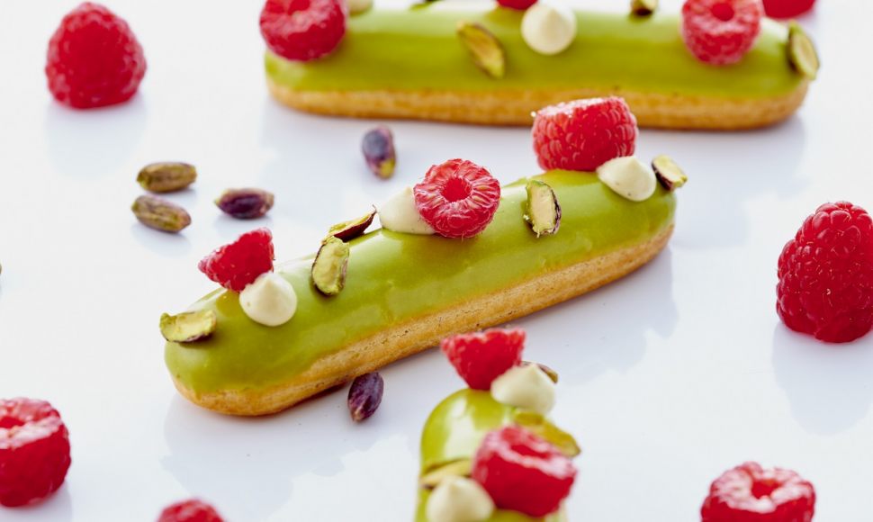 Un éclair au chocolat ? Quelle idée. Désormais, les pâtissiers jouent avec les saveurs, associent les parfums pour davantage de gourmandise. Jimmy Mornet choisit de réaliser une chantilly à la pistache et un crémeux à la framboise.